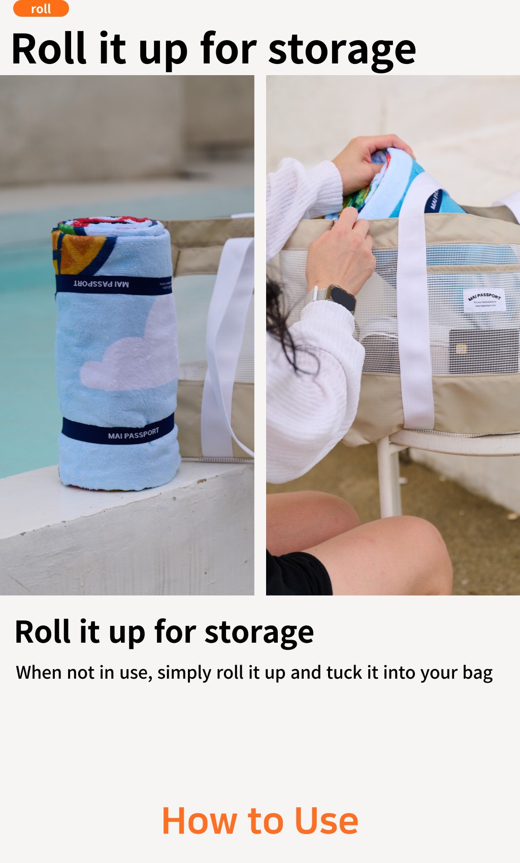 It rolls up neatly for easy storage and fits perfectly in your bag. :)